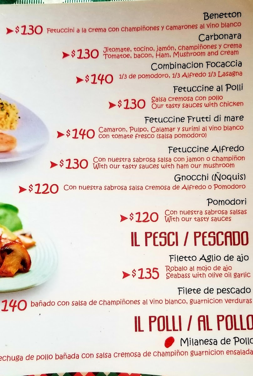 For pasta enthusiasts, the restaurant serves Spaghetti with Olive Oil, Garlic, and Basil, an aromatic dish that highlights the simplicity of Italian cooking. The Spaghetti A Los 4 Quesos is a rich and creamy option for cheese lovers. The Pasta Especial Focaccia is another standout, featuring a unique blend of ingredients. You can also savor the Chicken Alfredo, a comforting dish that’s sure to please.